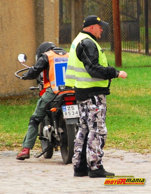 Najlepsi kursanci, którzy do nas przychodzą, to ci którzy szkolą się na kategorię A1 – mówi Adam Cieślak. – Bo to są młodzi ludzie, którym można poukładać dobrze w głowie, pokazać im co to jest jeżdżenie motocyklem, jakie są niebezpieczeństwa. Zdają prawo jazdy na 125kę i przez dwa lata robią sobie praktykę tymi maszynami. 125ka za szybko nie pojedzie, bo 90-100 km/h to jest max, nie ma dużego przyspieszenia, można nauczyć się hamować, wchodzić w zakręty, parę razy się wyglebić i nic się nie stanie. Ttay ludzie po dwóch latach przychodzą, wsiadają na większy motocykl i nie ma z nimi żadnego problemu. Pokazywanie im, jak się jeździ na większej maszynie, to jest przyjemność. I dla mnie tak samo powinno wyglądać szkolenie dorosłych, także trzydziesto-, czterdziestoletnich. Też powinni pojeździć ze dwa lata na mniejszym motocyklu, i potem wsiadać na coś większego. A nie od razu 70-konna maszyna na kursie, więc po egzaminie wsiada na 150-konną. Nie da rady nauczyć się w ten sposób.