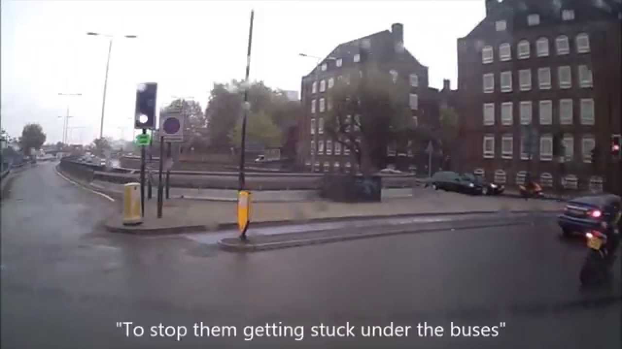Prawdę mówiąc, nie jesteśmy do końca przekonani które z Praw Murphiego opisuje tę sytuację, ale jesteśmy bardziej niż pewni, że któreś będzie pasowało idealnie. O co chodzi? Otóż kierowca vana wjeżdża na jedno z londyńskich rond i oferuje swojemu pasażerowi słowa wiedzy – opowiada o tym, jak niebezpieczne jest to miejsce dla cyklistów. Chyba bardziej miał na myśli rowerzystów, a nie motocyklistów, ale prawda jest taka, że rondo jest niebezpieczne dla obu tych grup. Kierowca opowiada dalej, że zginęło tu wielu cyklistów, że miały nastąpić zmiany, które uchroniłyby cyklistów przed wpadaniem pod busy. Facet naprawdę wydaje się przejęty losem poszkodowanych jednośladowców, a wtedy…