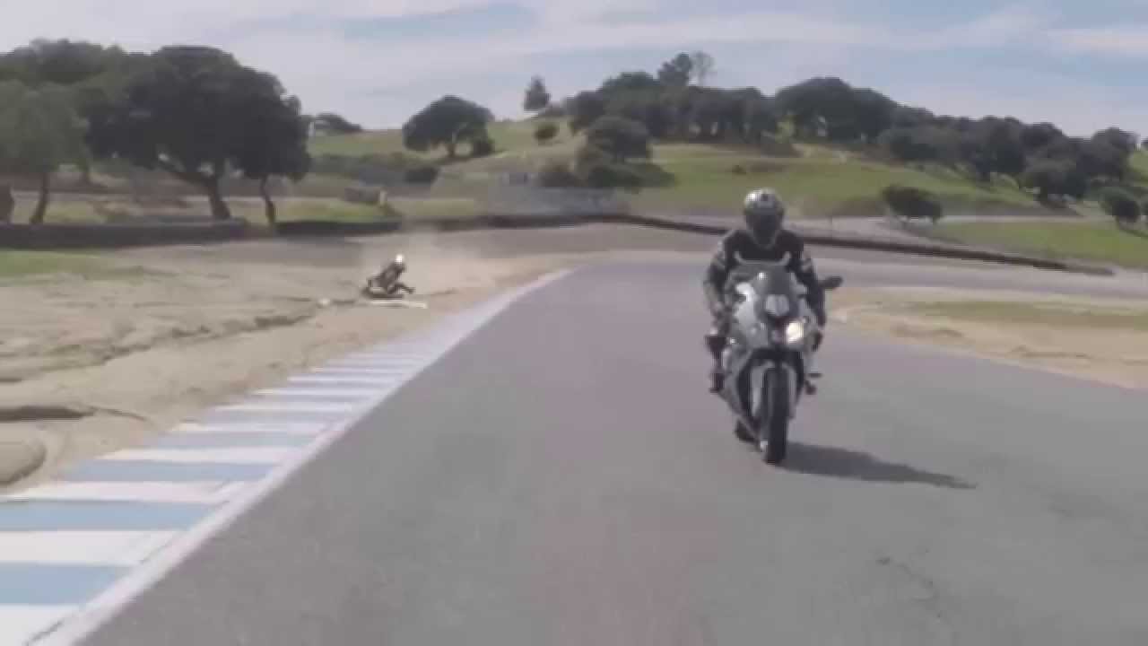 Daniel Kim, jadący na Ducati 1199 Panigale, twierdzi że podjął próbę ominięcia uczestnika jadącego z przodu. Wtedy wyjechał z zakrętu szeroko, na pobocze. Tam uderzył w rozłożone worki z piaskiem, które spowodowały wypadek i kontuzje. W swoim pozwie Kim uważa, że firma organizująca track day (Keigwin’s At The Track) dopuściła się poważnego zaniedbania, pozostawiając worki z piaskiem na poboczu.