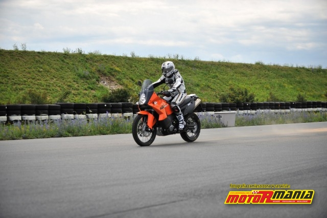 Współczesne opony oferują tak dużo przyczepności, że limitującym czynnikiem nie jest blokowanie się koła, ale wystrzelenie kierowcy twarzą przez kierownicę, czyli stoppie. Niektóre systemy ABS otrzymują od żyroskopów dodatkowe informacje o kącie nachylenia przodu maszyny i kiedy tył podnosi się zbyt mocno, siła hamowania słabnie. S1000RR podnosi tył nawet na mokrym torze (tak było podczas premiery opon Metzeler M5). Takie sytuacje zdarzają się częściej wysokim motocyklom, jak SM-T, ale również S1000RR. System sprawiał, że prędkość, z jaką tył się unosił, była niższa, ale nadal trzeba było puszczać przedni hamulec, aby temu zapobiec. W przypadku ZX10R było dużo lepiej, ponieważ kierowca ma więcej miejsca, aby przesunąć się do tyłu. Wniosek? Jeśli chcesz wyprzedzić kogoś na hamowaniu, szukaj wysokich gości. To tyczy się także motocykli. SM-T i Diavela poddano próbie na nawierzchni o malejącej przyczepności. Podczas gdy KTM wierzgał się i miotał, podnosząc tył i zmuszając do puszczenia hamulca, Ducati zachowywało się bez dramatów, dzięki dużemu rozstawowi osi i nisko położonemu środkowi ciężkości. W połączeniu ze świetnymi zaciskami Brembo Monobloc, daje to największą siłę hamowania, jaką kiedykolwiek Bosch zmierzył na motocyklu. Tak mocną, że Ducati poprosiło Boscha o minimalne ograniczenie siły działania z 1.1G do nieco poniżej 1G.