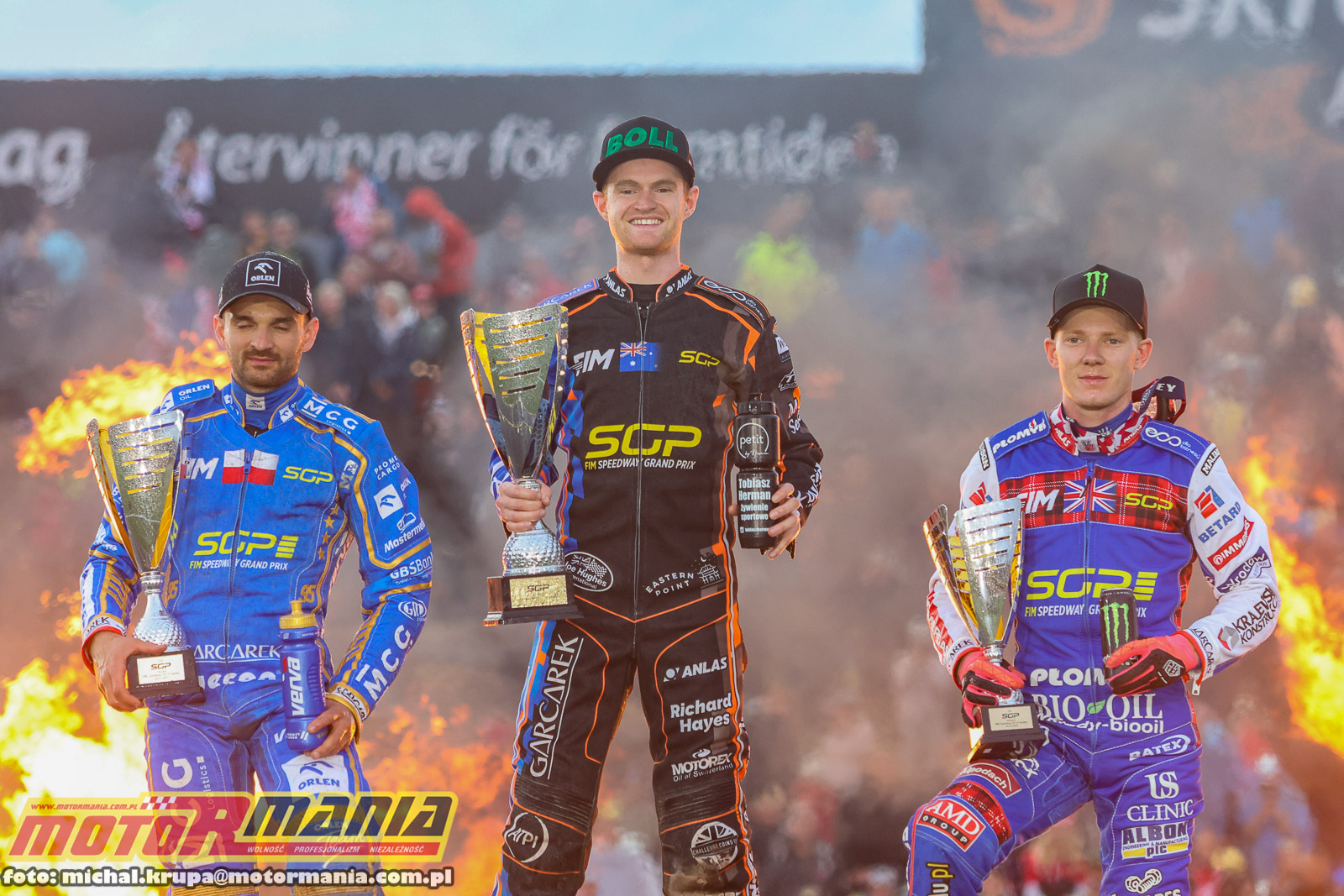 Brady Kurtz zwyciężył niedzielną Grand Prix Szwecji, która rozegrano na torze w Malilli. Drugą lokatę zajął broniący mistrzowskiego tytułu Bartosz Zmarzlik, a podium uzupełnił Brytyjczyk Daniel Bewley. Drugi z biało-czerwonych – Dominik Kubera – ukończył zawody na 11. pozycji. Kolejna runda cyklu 2 sierpnia w Rydze.