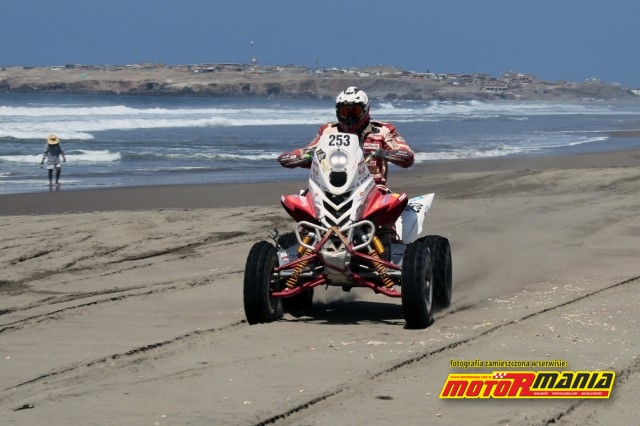 – Początek trasy bardzo trudny, jechaliśmy po miękkich wydmach. Później zjeżdżaliśmy z ekstremalnie stromego zjazdu, miał ponad 400 metrów długości, tamtędy zostały puszczone tylko motocykle. Trudno było wyhamować sprzęt i cały czas walczyliśmy żeby się utrzymać w siodle. Na końcu była bardzo stroma ściana, przed którą ciężko było się zatrzymać. Odcinek jednak bardzo dobry. Jechaliśmy kawałek bezpośrednio nad morzem, tam nie mogliśmy się rozpędzić z powodu silnego wiatru – komentował Kuba Przygoński.