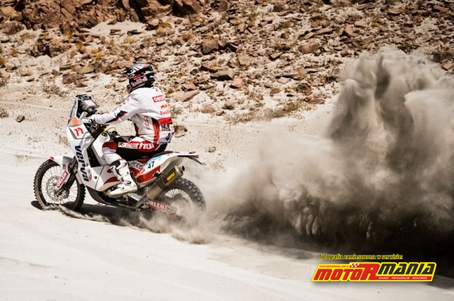 Rafał Sonik na trasie wiodącej z nad brzegów Oceanu Spokojnego, do położonej na 3000 m.n.p.m. Calamy uzyskał siódmy czas i wrócił na trzecie miejsce w „generalce”. Poza nim i jednym reprezentantem RPA, cała pierwsza „10″ to w tej chwili quadowcy z Ameryki Południowej.