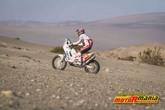 Kłopoty miał Joan Barreda Bort. Zwycięzca wczorajszego etapu najpierw pogubił się na trasie, po czy stanął. Przyczyną była najprawdopodobniej awaria układu paliwowego. Jacek Czachor uzyskał dziś 37. czas. Kapitan polskich motocyklistów awansował o kolejne dwa miejsca w generalce rajdu. Jest już 26., a jego kolega z zespołu, Marek Dąbrowski, przeskoczył z 80. na 74.miejsce.