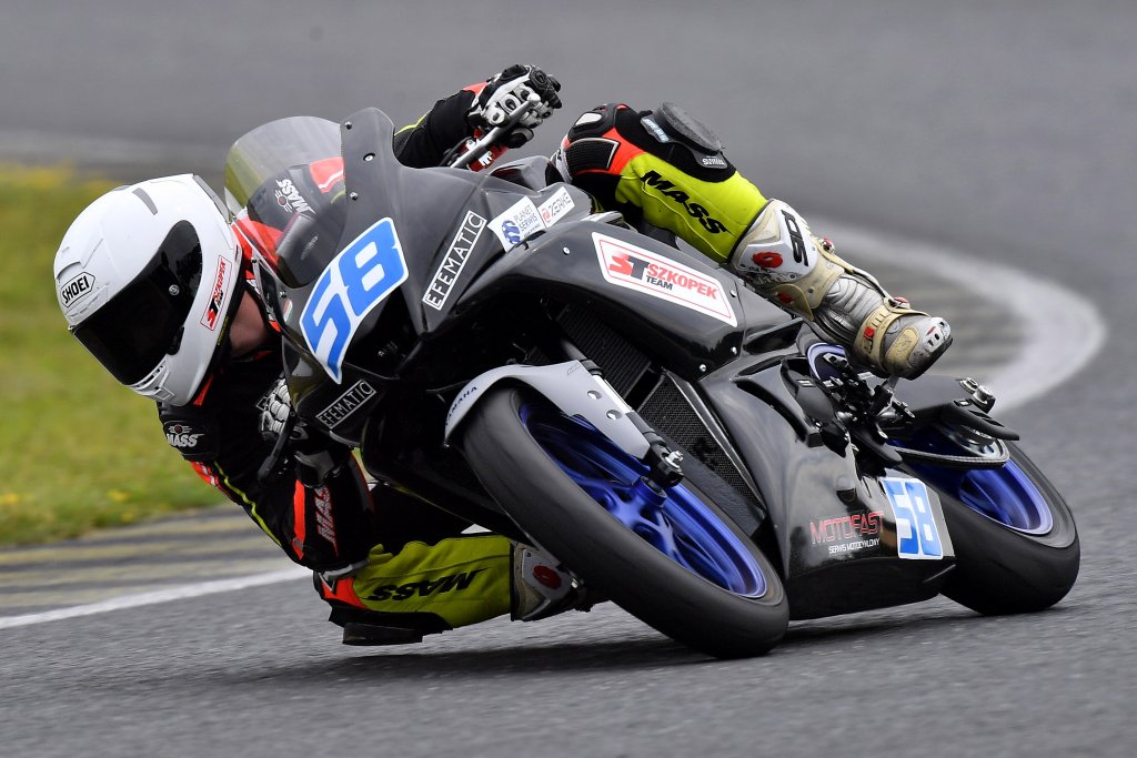 Jednym z siedmiu zawodników, którzy poślizgnęli się na wodzie naniesionej na asfalt przez safety car, był właśnie obrońca tytułu mistrza Polski. Mechanicy Szkopek Teamu byli jednak w stanie odbudować jego Yamahę R1 przed niedzielnymi zmaganiami.