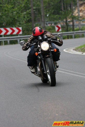 W przypadku silnika Thruxtona czeka nas pozytywne zaskoczenie. Motocykl, jak na konstrukcję retro, bardzo szybko wspina się na obroty, oferując kapitalną dynamikę w dolnym i średnim zakresie obrotów. Nie mamy tam, co prawda, do dyspozycji mocy, która zerwałaby gwałtownie przyczepność na idealnej nawierzchni, ale wrażenia można swobodnie sklasyfikować jako sportowe. Zresztą, ta kwestia zerwania przyczepności powiązana jest również z kątem złożenia motocykla, ale opis podwozia za chwilę.