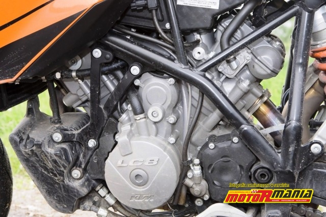 Jednostka napędowa oznaczona jest słynnym symbolem LC8. Konstrukcja jest dwucylindrowa, gdzie cylindry są ustawione względem siebie w kształcie litery V pod kątem 75 stopni. To silnik o ekstremalnie kompaktowej konstrukcji. Jego waga wynosi 58 kg. Pojemność skokowa to 999cc. Wykorzystuje on wtrysk paliwa firmy Keihin. Zastosowano sprzęgło cierne wielopłytkowe w kąpieli olejowej, uruchamiane hydraulicznie. Stopień kompresji wynosi 11,5:1. Producent podaje, że 990 SM T rozwija maksymalną moc 85 kW@9000 obr./min. (czyli 113KM). Maksymalny moment obrotowy 97Nm osiągany jest przy 7000 obrotów.