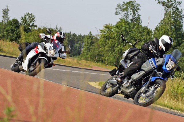 Yamaha XT 660 Z Tenere pomimo większej pojemności i stalowej ramie jest o 11 kg lżejsza od XJ6. Dzięki wysoko umieszczonemu środkowi ciężkości i wąskim oponom wrażenie dysonansu wagowego jest dodatkowo spotęgowane. Ma to swoje plusy i minusy. Motocykl wyjątkowo chętnie zmienia kierunki jazdy szybko reagując na nasze rozkazy. Pamiętajmy jednak, że porównujemy motocykle pod kątem „pierwszego sprzętu”. Jeśli nie jesteśmy pewni naszych umiejętności Tenere może się okazać podchwytliwa podczas manewrowania w korkach lub placach przy małych prędkościach. Bardziej stabilna Diversion ze swoim nisko umieszczonym siedzeniem wydaje się o wiele łatwiejsza do opanowania. Zawieszenie w XT ma czysty, offroadowy rodowód. Mimo to w zakrętach sprawia nam niesamowity fun. Motocykl zachowuje się trochę jak supermoto.