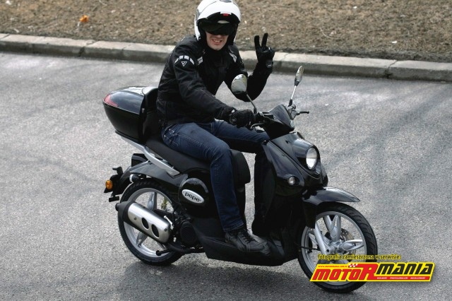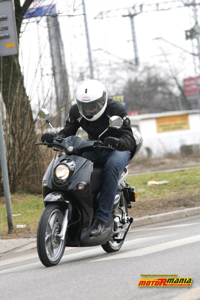 Jednostkę napędową uruchamiamy za pośrednictwem elektrycznego rozrusznika. Silnik nie generuje dźwięków typowych dla dwusuwów. Konstruktorom, prawdopodobnie przez zastosowanie odpowiedniego układu wydechowego, udało się tu wyeliminować charakterystyczne „brzęczenie”. Pojazd przypomina czterotakt także ze względu na sam wygląd tłumika. Nie widać dużej komory rozprężnej, więc każdy myśli, że skuter napędza silnik czterosuwowy. Tym większe jest zdziwienie otoczenia po starcie spod świateł… Po odkręceniu manetki skuter szybko reaguje na wydaną komendę i zaczyna się żwawo rozpędzać. Przyspieszenia pozwalają zawstydzać większość skuterów, które wyglądem udają „sportowe”. Pepe świetnie się rozpędza w pełnym zakresie prędkości. Mamy wreszcie częściowe połączenie zalet jednostki dwu- i czterosuwowej. Z jednej strony stosunkowo cicha praca, z drugiej znakomita dynamika. W testowanym modelu jednostka była jeszcze zblokowana, a w związku z powyższym maksymalna prędkość skutera wynosiła 45 km/h. Mając jednak na uwadze, że jest to ten sam silnik, który pracował w poprzednim wcieleniu Pepe, zdajemy sobie sprawę, że jego możliwości po odblokowaniu są znacznie większe… Prędkość maksymalna wzrasta wtedy do ponad 70 km/h, co w warunkach miejskich jest w pełni satysfakcjonujące.