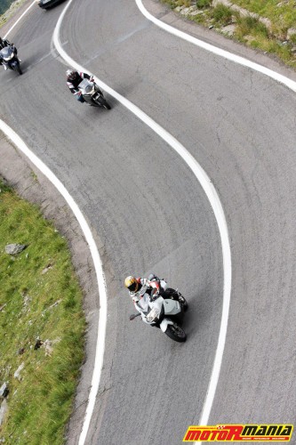Transfagarasan powstał ogromnym kosztem zarówno finansowym jak i ludzkim. Zużyto 600 ton dynamitu, a oficjalne dane mówią o śmierci 40 robotników. W rzeczywistości zginęło ich znacznie więcej, a z relacji naocznych świadków wynika, że tylko przy konstrukcji jednego z tuneli życie straciło blisko 400 osób. Droga poprowadziła nas na wysokość 2,034 metrów nad poziomem morza – w najwyższych sekcjach temperatura spadła do 15 stopni (37 st panowało na dole). W południowej części znajduje się jezioro Balea, a nieco dalej na południe zamek będący niegdyś rezydencją psychopatycznego Vlada III. Namordował tylu podwładnych, że z czasem przekazy o jego upodobaniu do widoku krwi przekształciły się w legendę Draculi. Tym samym Rumuni zafundowali prawdziwą żyłę złota kinematografii amerykańskiej. Część północna, która rozpoczyna się niedaleko miejscowości Arapasu de Jos wielokrotnie zapiera dech w piersiach – posiada fenomenalne przestrzenie i malowniczy wodospad. Niestety w najbardziej atrakcyjnej widokowo i najbardziej krętej części trasy asfalt nie nadaje się do dynamicznej jazdy motocyklem. Na zdjęciach nie widać, że nawierzchnia jest głęboko wyperforowana, tak jakby ktoś przeciągnął po niej jakieś wielkie, niszczycielskie grabie. Powstała w ten sposób sieć dosyć głębokich wyżłobień, która uniemożliwiała głębsze złożenia motocykli w zakręcie – znacznie mniejszym problemem była burza, która zafundowała nam dodatkowe problemy z przyczepnością.