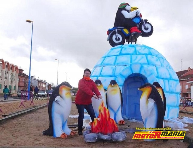 Po krótkiej drzemce śniadanko. Bułka, dżemik, jakiś owoc i kawa. Po posiłku tysiące motorów ustawia się pod bramą główną. To przejazd z flagami do oddalonego o 15km Valladolid. Tam właśnie obywa się też show stunt i freestyle. Tego roku to „Ultimate Burning” z Francji i Ricardo Domingo „Arrepiado Team” z Portugali. Niestety pogoda się psuje i zaczyna padać deszcz, więc nie jedziemy. Mimo to wybraliśmy się do Puente Duero, gdzie również odbywa się część imprezy. W centrum ustawiona jest wielka rzeźba tegorocznego zlotu, która zostanie spalona o północy. Na uliczkach gwar. Zewsząd słychać ryk silników. Motory zaparkowane są wszędzie, gdzie tylko jest kawałek wolnego miejsca.