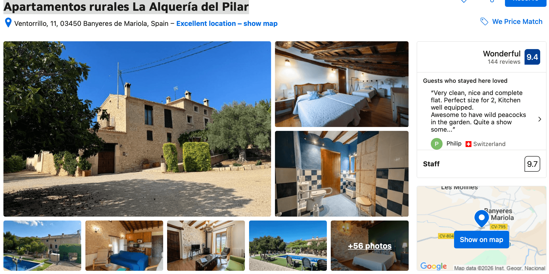 Uwzgledniajac postój obiadowy, około godziny 18.00 dotrzemy do ¨Apartamentos rurales La Alquería del Pilar¨ znajdujących się w pobliżu toru Mir Racing Villena, na którym będziemy trenować kolejnego dnia.